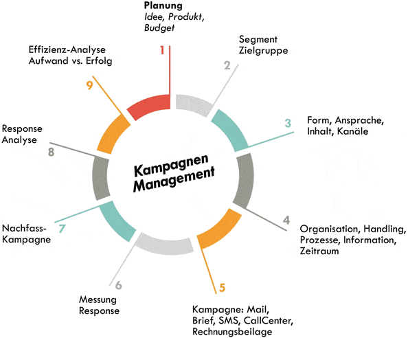 Beteiligte im Projektmanagement haben keine Gelegenheit, sich auf den bisher erreichten Lorbeeren auszuruhen, sondern sind gefordert, den Kampagnenerfolg konsequent voranzutreiben. Dazu zählt die detaillierte Auswertung der Kampagne hinsichtlich sämtlicher Kanäle. Stellen Sie sich konsequent die Frage, wo es Optimierungspotenziale und Multiplikatoren gibt. Im Fokus steht die Maximierung der KPIs.