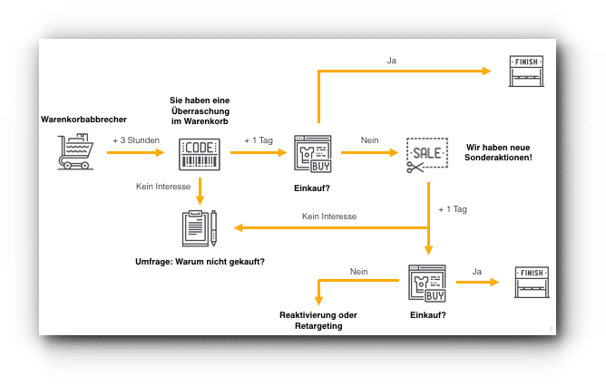 Hat sich ein Kunde beispielsweise schon länger nicht mehr in den Onlineshop eingeloggt, kann er durch eine entsprechende Mail auf aktuelle Angebote hingewiesen werden, die wiederum auf seinen bisherigen Einkäufen basieren. In der Praxis wird aber oft schon viel früher angesetzt. Automatisierte E-Mail-Kampagnen kommen beispielsweise auch nach der Registrierung als Neukunde zum Einsatz. Neben der Begrüßung als Neukunde lässt sich die Situation auch gleich für die Bewerbung von Sonderangeboten oder Neukundenrabatten nutzen. Hat der Kunde bei dieser Gelegenheit sein Geburtsdatum mit angegeben, können spezielle Geburtstags-Mails verschickt werden, die ebenfalls kurzfristige Rabatte auf das eigene Sortiment gewähren.